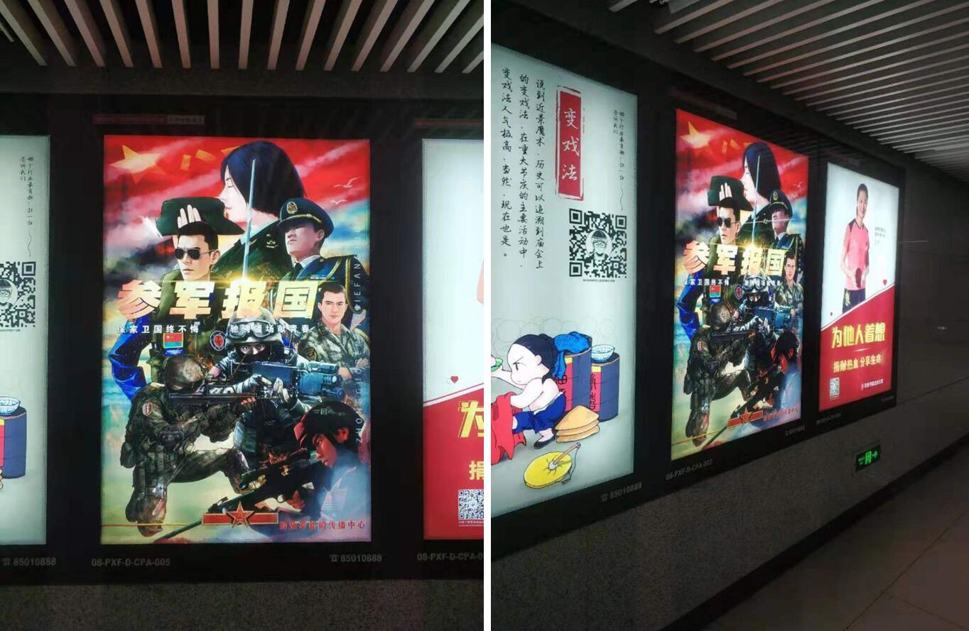 在中國人民解放軍新聞中心授權下,萬事成傳媒承接北京與深圳地鐵廣告公益宣傳: