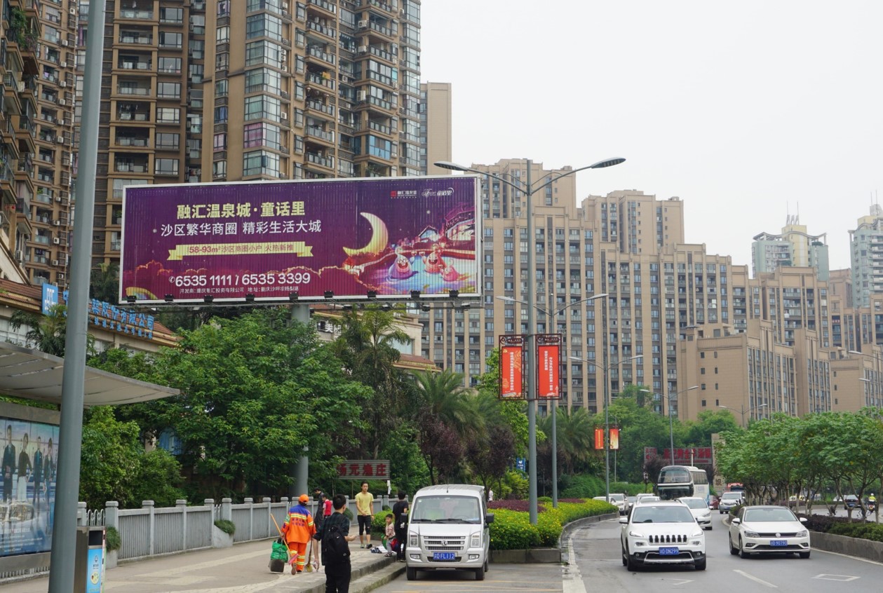 該廣告位位于沙坪壩區(qū)沙濱路,沙濱路是沙坪壩、渝中區(qū)、江北區(qū)三地往來的主要交通要道,該路段環(huán)境單純、地勢平坦、視野開闊;車流量大、廣告視覺沖擊力強(qiáng)、受眾目標(biāo)廣泛、廣告信息發(fā)布效果突出,是各企業(yè)、事業(yè)單位提高知名度和推廣產(chǎn)品的首選之地。