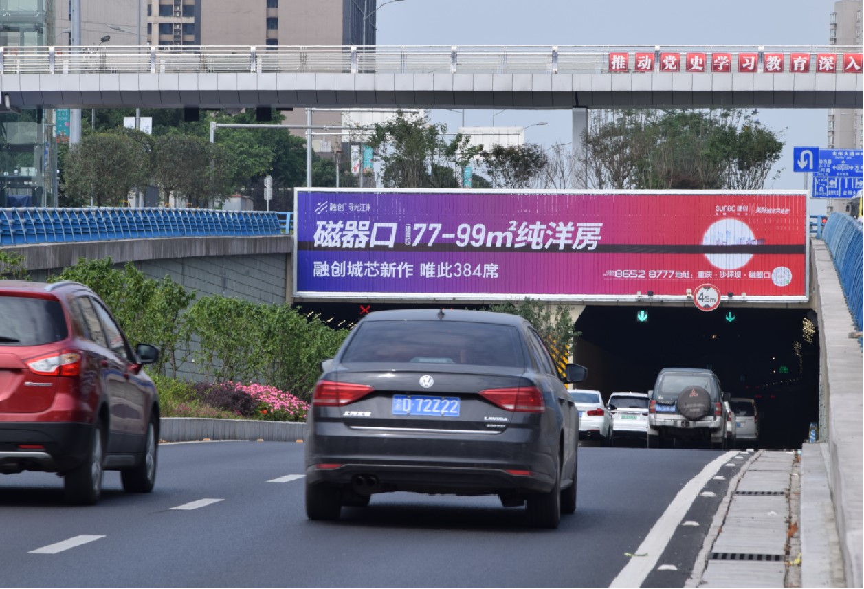 媒體位于星光大道重慶財(cái)富購物中心旁洪湖立交下穿道,附近積聚了精信中心、重慶金融中心、上丁工業(yè)園、國家稅務(wù)總局重慶市稅務(wù)局等大型shopping mail、高端寫字樓和政府重要機(jī)構(gòu)。媒體位于下穿遂道兩端,離地近,面積大,可雙向覆蓋北區(qū)高端居住區(qū)至照母山科技創(chuàng)新城上下班核心消費(fèi)人群