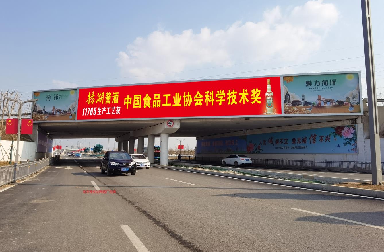 媒體位置:菏澤高鐵站南側跨路噴繪廣告牌