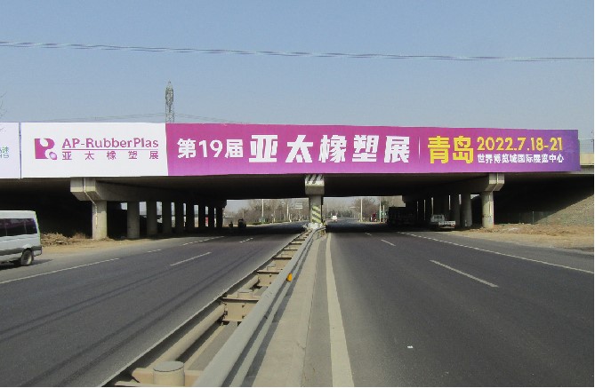 媒體形式:噴繪廣告(LED燈照明)河套樞紐S397省道橋體(機場通往青島市區方向);