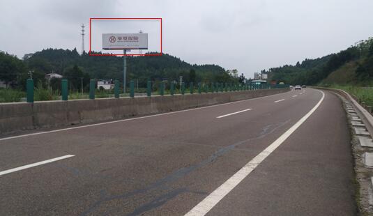 該廣告牌位于成渝高速公路,極具有視覺闖入性,附近廣告干擾較小,行于此,車行減速,停留時間長,更加深入了解廣告的認知效果,是樹立企業形象、宏揚品牌、展現實力優選。