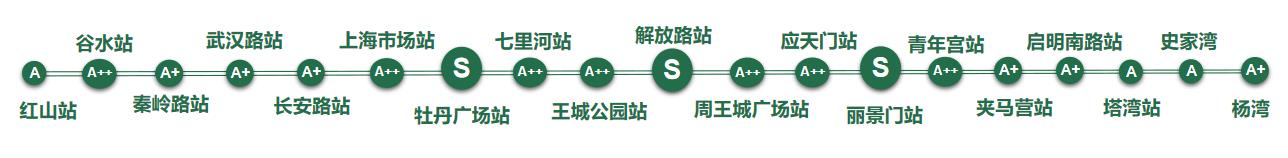 站點詳情:秦嶺路站、武漢路站、長安路站、夾馬營站、啟明南路站、楊灣站