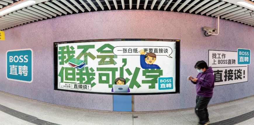 位于站廳最有價值的主體墻面,用墻貼的形式將多個燈箱串聯成一體,覆蓋全站客流及部分過街客流;