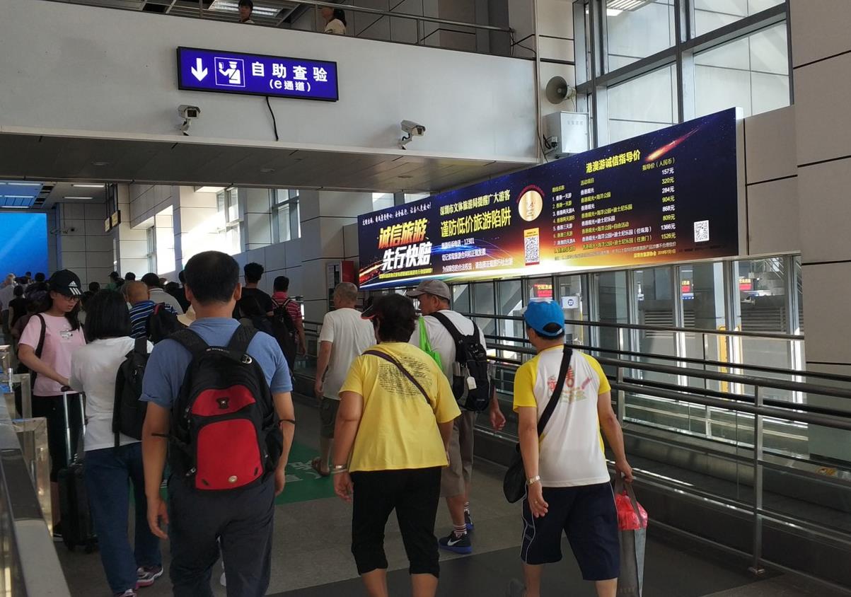 排隊出入境的通道上,深港跨境口岸媒體,重要提示,吸引消費者蘭注