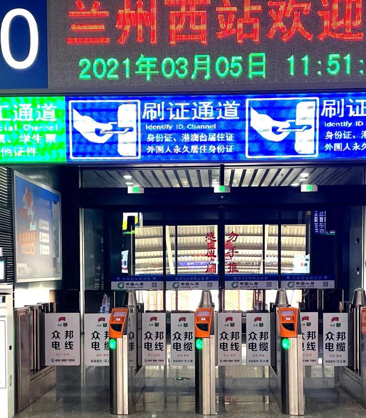 蘭州西客站候車室進(jìn)站閘口感應(yīng)門廣告