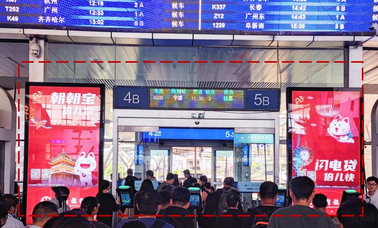 北京南站出發層候車大廳南北扶梯口內側動感燈箱廣告 · 2塊