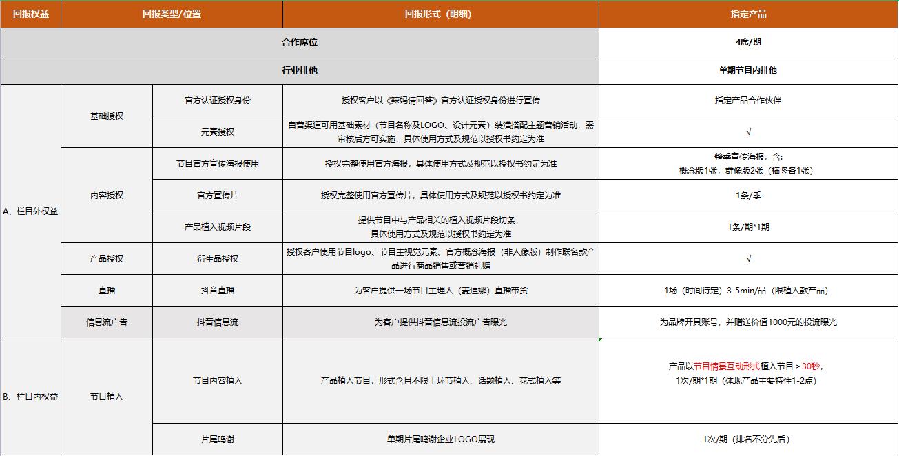 《星媽請回答》指定產品權益表