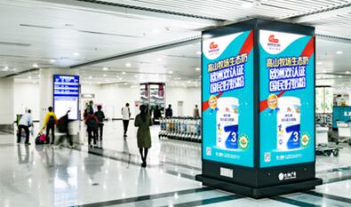 福州長樂機場廣告-長樂機場北斜指廊拐彎處四面包柱燈箱廣告