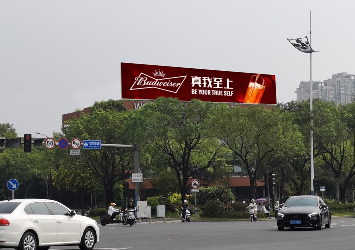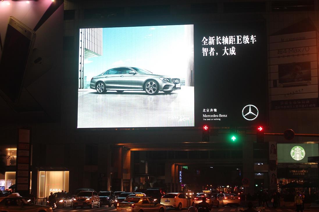 此LED顯示屏位于離地8M的高度, 視覺角度已作最合理調(diào)整,有著最佳的視覺角度,視距可達500M以上;整潔的廣告環(huán)境使此LED廣告屏成為唯一一個可以給受眾人群帶來巨大視覺沖擊效果的廣告媒體。