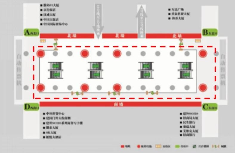 2、站廳西北側(cè)A出口:中國大飯店、中國國際貿(mào)易中心、國貿(mào)商城、國貿(mào)飯店、國貿(mào)公寓、中海廣場寫字樓