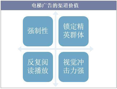 與電視廣告和網絡廣告相比,電梯廣告具有一定的強制性,用戶可以在乘坐電梯期間同時觀看框架和視頻的廣告信息,視覺沖擊力較強。同時,電梯廣告費用低廉,可反復閱讀,能傳遞更多的信息。此外,城區(qū)中高檔的商住樓里集中了城市主力消費群體,電梯廣告的目標性較強,能快速鎖定精英群體。