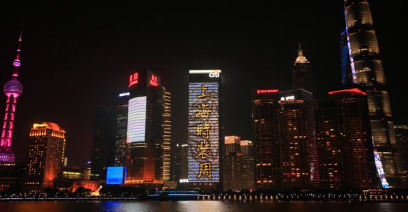 媒體形式:上海花旗銀行墻體LED屏燈光秀幕墻廣告