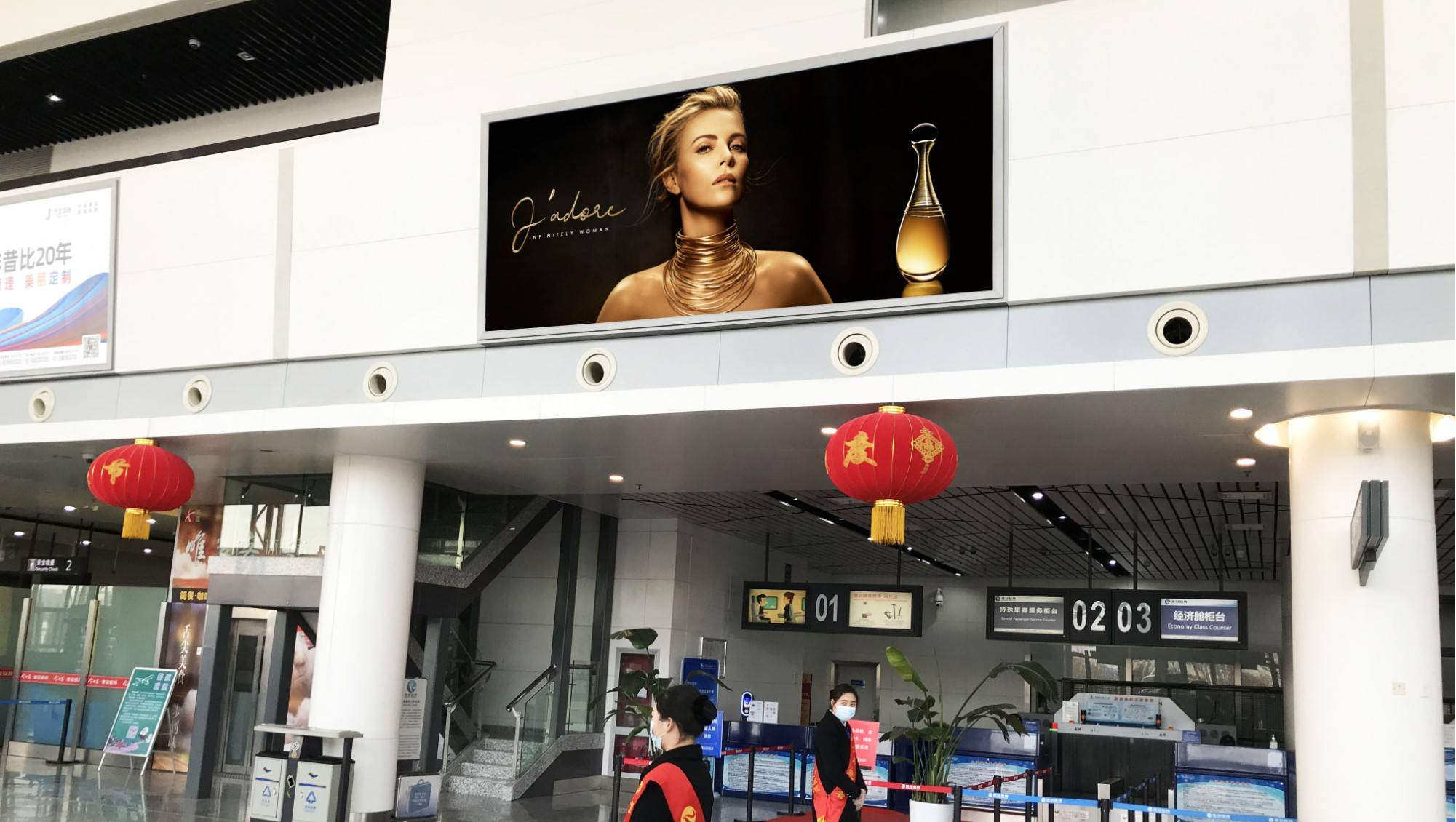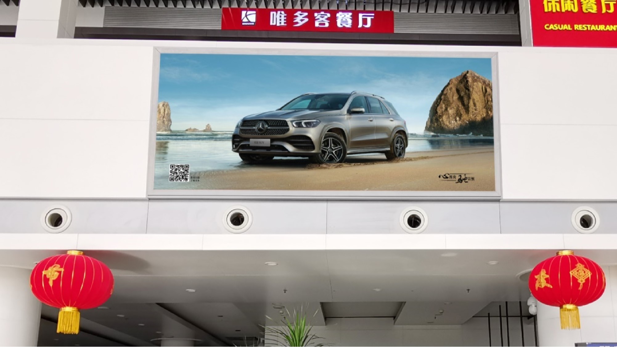 廣告位置:一層出發、到達混合大廳安檢口  正上方