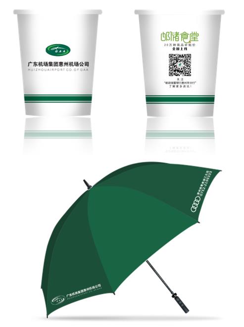 惠州機場消耗品媒體廣告:紙杯+雨傘