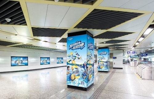 組合形式 :超級墻貼75㎡+13根站廳包柱+8塊6封站廳燈箱+玻璃貼(不少于20塊)
