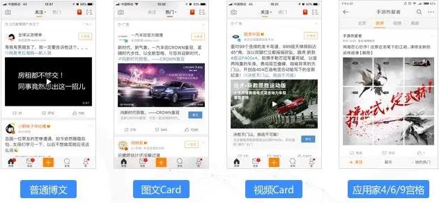 (3)微博信息流廣告。可以利用多種短視頻方式,展現(xiàn)樣式原生,豎屏全新視覺(jué)體驗(yàn),賬號(hào)關(guān)聯(lián)強(qiáng)聚粉,可以分享、傳播等多種方式靈活并用,同時(shí)支持多種廣告樣式和效果優(yōu)化方式。
