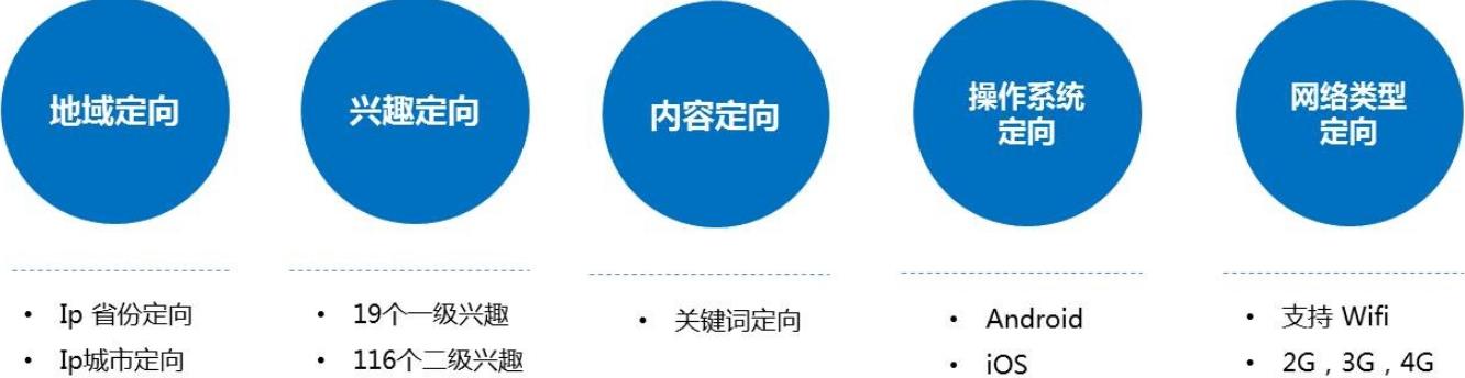 開放多種定向方式,滿足廣告主基礎投放需求
