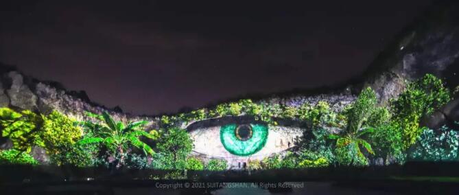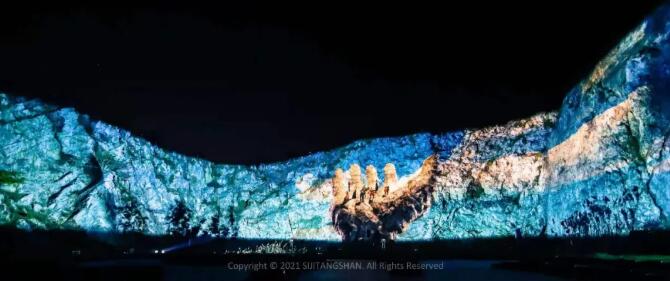 南京湯山礦坑崖壁光雕實景燈光秀!11000㎡的大型山體投影,直觀全面地還原大地之美!
