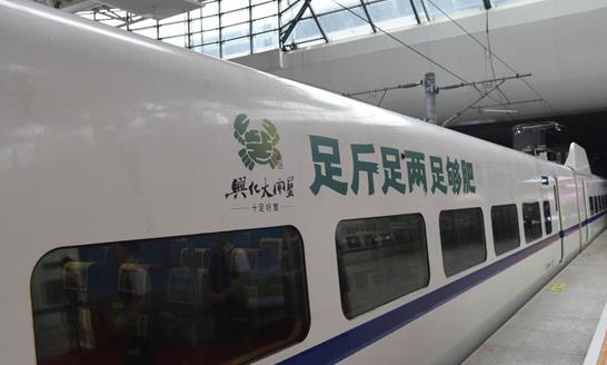 “興化大閘蟹”滬寧線高鐵列車冠名廣告首發暨開捕季啟動儀式在上海虹橋高鐵站舉行。