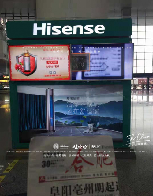 為全面提升品牌形象和市場影響力,娃哈哈·奢純大手筆投入高鐵廣告,12月初高調亮相全國54座高鐵站,迅速席卷全國。娃哈哈奢純·高鐵廣告樣式包括進站口電子屏廣告及候車室電子屏輪播廣告。消費者和潛在合作商無論是在候車室等待時還是上下列車時均能看到娃哈哈·奢純的品牌形象。